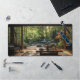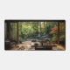 Bring the serenity of this Japanese themed workbench into your workspace with this exquisite desk mat. Personalise it with a name printed on the lower right corner. This mat features a view of a Japanese workbench with a view of a lush green garden with a high-quality print from a high definition graphic. It provides a smooth and comfortable surface for your work for your laptop, keyboard and mouse. It can also transform your workbench with a stylish and elegant touch. Perfectly suited for all creators, artists, writers and anyone inspired.
