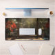 Bring the serenity of this Japanese themed workbench into your workspace with this exquisite desk mat. Personalise it with a name printed on the lower right corner. This mat features a view of a Japanese workbench with a view of a lush green garden with a high-quality print from a high definition graphic. It provides a smooth and comfortable surface for your work for your laptop, keyboard and mouse. It can also transform your workbench with a stylish and elegant touch. Perfectly suited for all creators, artists, writers and anyone inspired.
