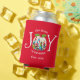 Fun JOY TO THE WORLD Personalised Festive Can Cooler in RED. The text says BRINGS JOY TO THE WORLD. The O in JOY is represented by a festive Christmas pudding, incorporating a selection of FLAGS OF THE WORLD. Underneath there is a placeholder name, which you can personalise with your own name or text of choice. Matching items available. Also comes in other colours.