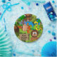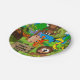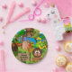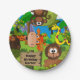A fun personalised birthday paper plate. Animals including a giraffe, monkey, gorilla, lion, snake and a personalised jungle sign letting everyone know it's a birthday celebration.