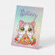 Personalised Kawaii Cat Eating Pizza Custom Pedestal Sign