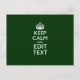 Personalised Keep Calm And Have Your Text on Green Postcard