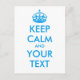 Personalised KEEP CALM and YOUR TEXT - blue words Postcard
