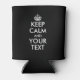 Personalised Keep calm and your text can cooler. Make your own funny keep calm and carry on parody design. Vintage keepcalmandcarryon typography with crown. Create your own humourous keepcalm spoof with this template. Customisable background colour. ie black Fun idea for wedding, birthday party etc.
