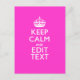 Personalised KEEP CALM AND Your Text Vibrant Pink Postcard