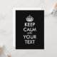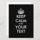 Personalised KEEP CALM and YOUR TEXT - white words and chahge black background colour