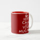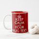 Personalised Keep Calm mug with customisable text. Cute gift idea for men and women. Customise background colours ie red. Create your own funny Keep Calm and Carry On parody. Simply edit the text of this template to make a unique design. Popular quotes: Keep calm and party on. Keep calm and love me. Keep calm and drink coffee. Personalised mugs are a great gift idea for friends and family.
