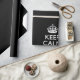 A personalised solid black Keep Calm and Carry On style saying on a custom gift. Humourous or whimsical try on your creative words on the two editable lines of text. Remember to use CAPITAL letters for best results.