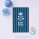A personalised trendy blue stripes decor Keep Calm and Carry On style saying on a custom gift. Humourous or whimsical try on your creative words on the two editable lines of text. Remember to use CAPITAL letters for best results.