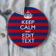 Have your personalised Keep Calm saying on this fine custom gift for yourself or for someone special on your list. Offered on a vibrant stylish red and blue horizontal stripes decor. Humourous or whimsical try on your creative words on the two editable text fields you see on this product page. Remember to use CAPITAL letters for best results.