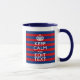 Have your personalised Keep Calm saying on this fine custom gift for yourself or for someone special on your list. Offered on a vibrant stylish red and blue horizontal stripes decor. Humourous or whimsical try on your creative words on the two editable text fields you see on this product page. Remember to use CAPITAL letters for best results.