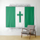 Patriotic keepsake NIGERIA FLAG Tapestry with Cross and Scripture Verse. Design shows the flag of NIGERIA with a green cross with drop shadow at the centre. A thin black border surrounds the flag. On the long sides there is a placeholder name and Scripture verse which are both CUSTOMIZABLE, so you can replace with the name of your church or organisation, or other text of choice. If you attach weights at the corners (not included), the extra large size tapestry could possibly also be used as a PALL CLOTH or CASKET COVERING at a funeral, and kept as a keepsake afterwards. Other flags and versions available.