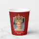Celebrate your little one's special day in royal style with this custom red paper cup that features an elegant background of gold shimmery lines. Personalise this bright design with a photo of your young birthday boy, complete with a beautiful gold king or prince crown.