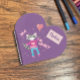 A cute purple heart-shaped notebook for kids to give away on Valentine's Day . Personalised it with your child's name .