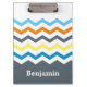 Personalised Kids Chevron Grey Blue Orange Yellow Clipboard
