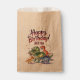 This personalised cute green dinosaur happy birthday favour bag design shows adorable watercolor dinosaurs of various colours. This design also shows festive confetti as well as the phrase "happy birthday". Personalise with your name. The main colour scheme is greens, reds, and blues. Enjoy this fun kids birthday party favour bag design!