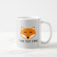 Personalised kids mug with cute red fox design. Cute gift idea for childrens Birthday or Christmas. Personalizable drinkware for boy or girl. Custom grey background colour. Grey and white polka dots pattern print. Double sided design.