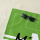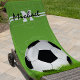 Personalised kids beach towel featuring a green background that can be changed to any colour, a soccer pitch, your initials, name and a football.