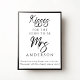 Personalised Kisses for the Mrs Bridal Shower Game Poster - A modern, simple and chic bridal shower game poster featuring script font text and stylish block font with black and white colour palette. Personalise by adding the bride to be's future last name. Fits a variety of bridal shower themes whether you're planning a spring, summer, fall or winter bridal shower, indoors or outdoors bridal brunch. Edit the game instructions to fit your party needs. Available as a printed poster or instant digital download to print at home. Place this poster in your favourite frame and display as part of your bridal shower decor.