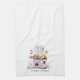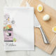 Retro kitchen with pink stove, apron, pots & pans, and fruit & veggies kitchen towel. Personalise with your name or your own custom text. Great bridal kitchen shower gift!