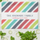 Easily personalise this colourful kitchen towel template with your family name, message and favourite background colours to match your home décor.