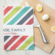 Fresh look hand towel designs with stripe pattern and custom family names, great to brighten any kitchen décor.