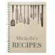 Personalised kitchen utensils recipe notebook. Add your own name.