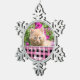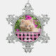 Personalised Kitten's First Christmas Pink Check Snowflake Pewter Christmas Ornament