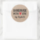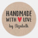 A personalised 3 inch rustic "handmade with love" sticker on a kraft coloured background. Make it yours by adding your own name. A pretty finishing touch for all of your handmade gifts. Designed for you by Blackberry Boulevard.