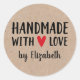 A personalised rustic "handmade with love" sticker on a kraft coloured background. Make it yours by adding your own name. A pretty finishing touch for all of your handmade gifts.  Designed for you by Blackberry Boulevard.