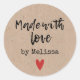 Personalised Kraft Made With Love Heart Classic Round Sticker