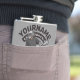 The flask itself is fine. It’s a cheap flask, obviously bought in bulk, however am prepared to overlook that. Given that it is a personalized item, I would have liked to have seen gift boxing instead of the generic packaging. Terrible printing, and/or quality. It’s a cheap, tacky vinyl. It is not cut straight and is also applied in a way that it is overhanging the bottom, causing the glue to catch on items and it will eventually roll and tear, damaging the wrap.