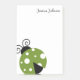 This is Personalised Ladybug notepad. This post it notes featuring is a white background with large red and black ladybug peeking in from the bottom left side. You can customise with a name or message. It is fun office supplies for work or home.