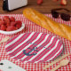 Personalised Nautical Lake or Beach Red White Striped Design by © Cathy Thompson. I have set up the template so that you can customise with your lake's or beach's name. No need to be tech savvy. Easy!