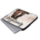This laptop sleeve looks exactly as it does in picture. I actually thought is was too small until I put my laptop in it. It's a bit snug, but it fits. Figure it will stretch a bit, hopefully seams hold. Them seem good for now. I didn't have any personalization done, looks great as is.