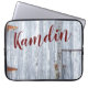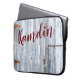 This laptop sleeve looks exactly as it does in picture. I actually thought is was too small until I put my laptop in it. It's a bit snug, but it fits. Figure it will stretch a bit, hopefully seams hold. Them seem good for now. I didn't have any personalization done, looks great as is.