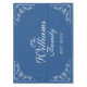 Personalised family name navy blue and white table cloth for dinner party. Black and white tablecloth with elegant ornate flourish swirly swirls. Classy vintage home decor for husband and wife couple / bride and groom newly weds. Stylish script calligraphy typography with personalizable surname. Cute custom gift idea for classy wedding, engagement, baby shower, new baby, anniversary, birthday, housewarming party, reunion etc. Pretty chic interior decoration for reception / dining room. Make your own with your last name and custom established year. Est. 20XX. Create your own for newly weds, married couple, husband and wife, bride and groom, his and hers, mr and mrs, grandparents, newlyweds etc.