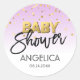Add these cute and modern personalised baby shower stickers / labels to your invitations and gift favours. Modern boy or girl baby pastel lilac purple lavender with faux gold foil. Customise them by adding mummy-to-be's name and date.