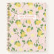 Personalised spiral notebook with light pink background and lemon pattern. Great gift for teachers or citrus lovers.