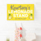 Bright lemonade stand banner featuring cute yellow background, vector drawn lemons, and an editable text template for you to customise.