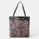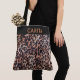 Go leopard with this classic all-over-print tote bag. This design features a brown, black, and white leopard skin texture background with a black leather effect border. In the centre of the border, you can add the recipient's name to personalise this product. This tote bag makes a great gift for the woman that likes to be stylish.