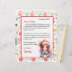 Personalised letters from Santa for children. Add your child's name to this personalised letter from Santa Claus. Cute watercolor female elf holding a cross. Religious Christmas letter from Santa. Back is a colouring page of a church in winter with kids playing in front of it.