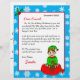 Add your child's name to this personalised letter from Santa. Cute elf sitting on a bag of toys. Colouring page on back.
