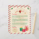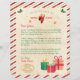 Personalise this letter from Santa with your child's name and text. This design features a Santa, presents, mistletoes, an oval Merry Christmas stamp and red green striped border. On the back is red and green striped background.