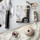 Personalised Monogram Wrapping Paper with Black and White Check Marble Design by MIGNED - Add Your Letter / or Year - Age / Number / More with Customisation tool !