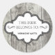 Personalised Library Bookplate Rustic Wood Classic Round Sticker
