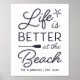 Decorate your seaside abode with this rustic frameable print featuring the phrase "life is better at the beach" in deep navy blue lettering accented with a starfish and an oar. Personalise with your family name and/or year established beneath.