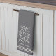 Celebrate life at the lake with this cute personalised kitchen towel featuring your family name and/or year established beneath "life is better at the lake" adorned with a canoe paddle and anchor. Rope detailing completes the design.