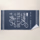 Upgrade your outdoor setup at your seaside abode with this cute personalised beach towel featuring the phrase "life is better at the shore" in white lettering accented with an anchor and an oar. Personalise with your family name and/or year established beneath.