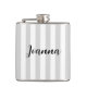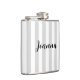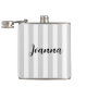 The flask itself is fine. It’s a cheap flask, obviously bought in bulk, however am prepared to overlook that. Given that it is a personalized item, I would have liked to have seen gift boxing instead of the generic packaging. Terrible printing, and/or quality. It’s a cheap, tacky vinyl. It is not cut straight and is also applied in a way that it is overhanging the bottom, causing the glue to catch on items and it will eventually roll and tear, damaging the wrap.